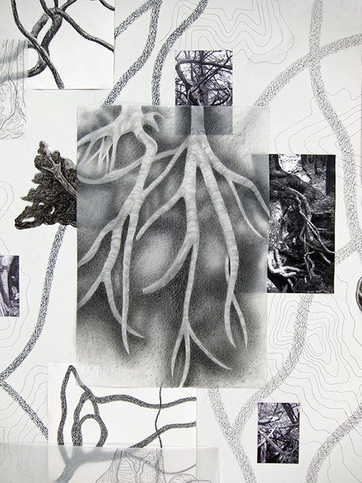 Wilderness Drawing 7. Wall installation with digital prints, drawings on vellum and paper with litho crayon,